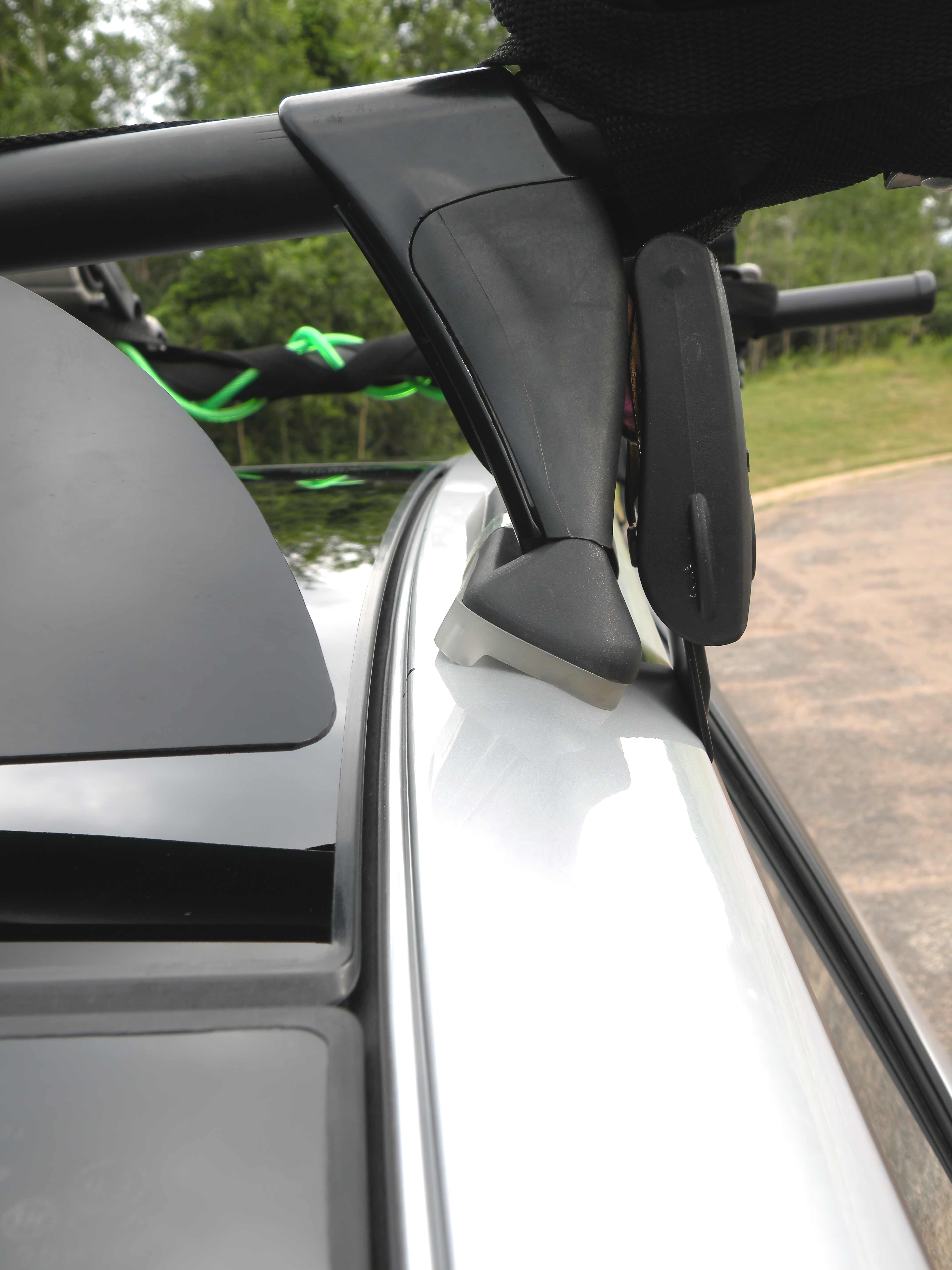 Close-Up photos of all 4 roof-rack towers secured to the 2010 Prius (Mon. 7/20/2009):