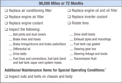The images below are scans of the NORMAL schedule. For the SPECIAL OPERATING CONDITIONS schedule, refer to http://www.toyota.com/prius. You can download a complete copy of the scheduled maintenance manual there too.