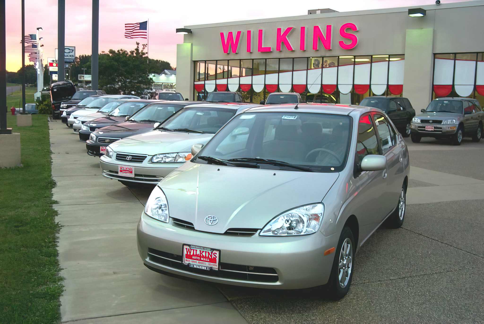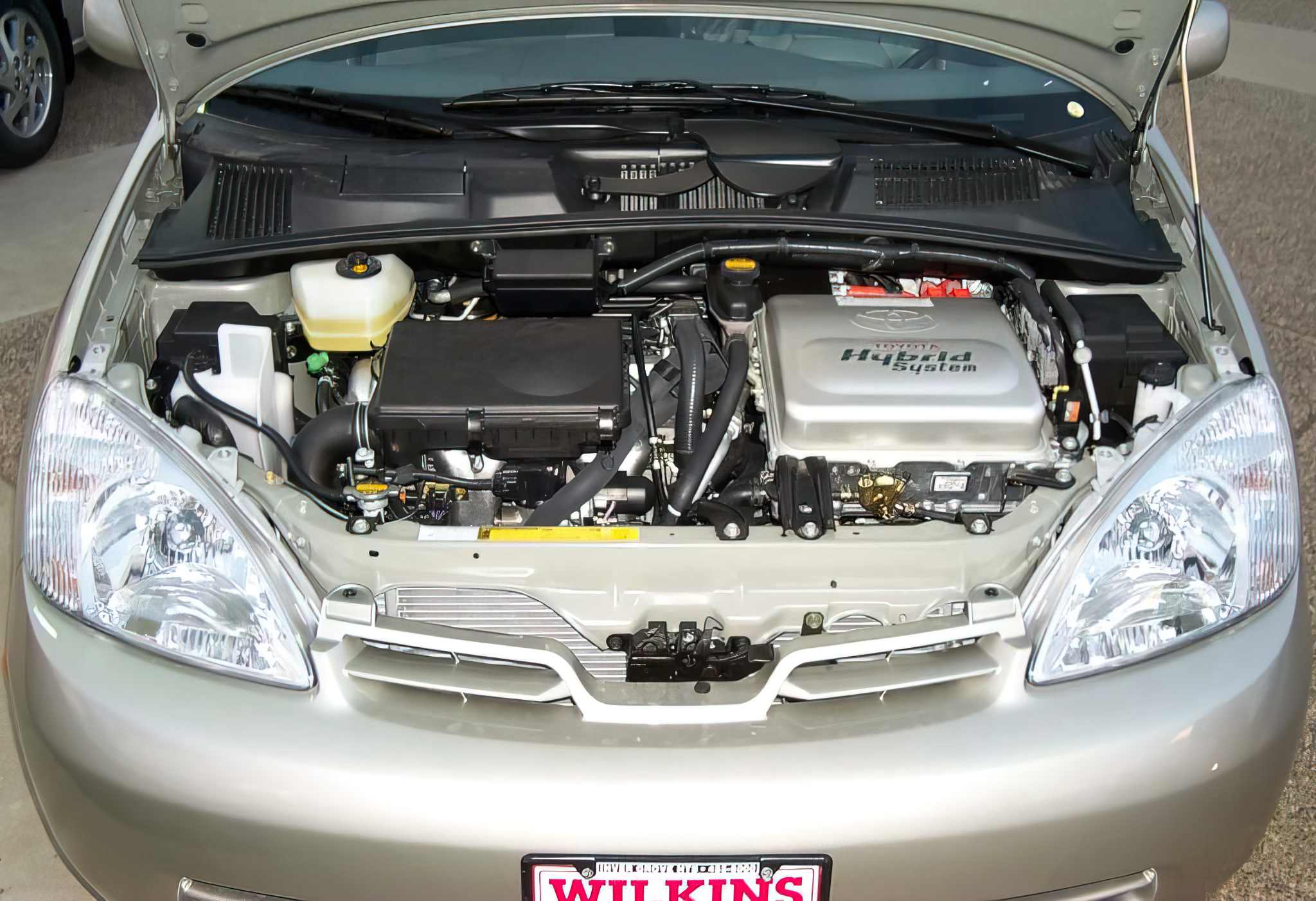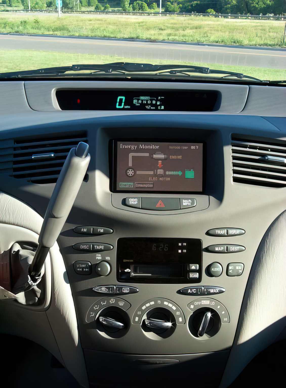My mini-Prius placed on the moonroof of the traditional vehicle I bought back in the 20th: