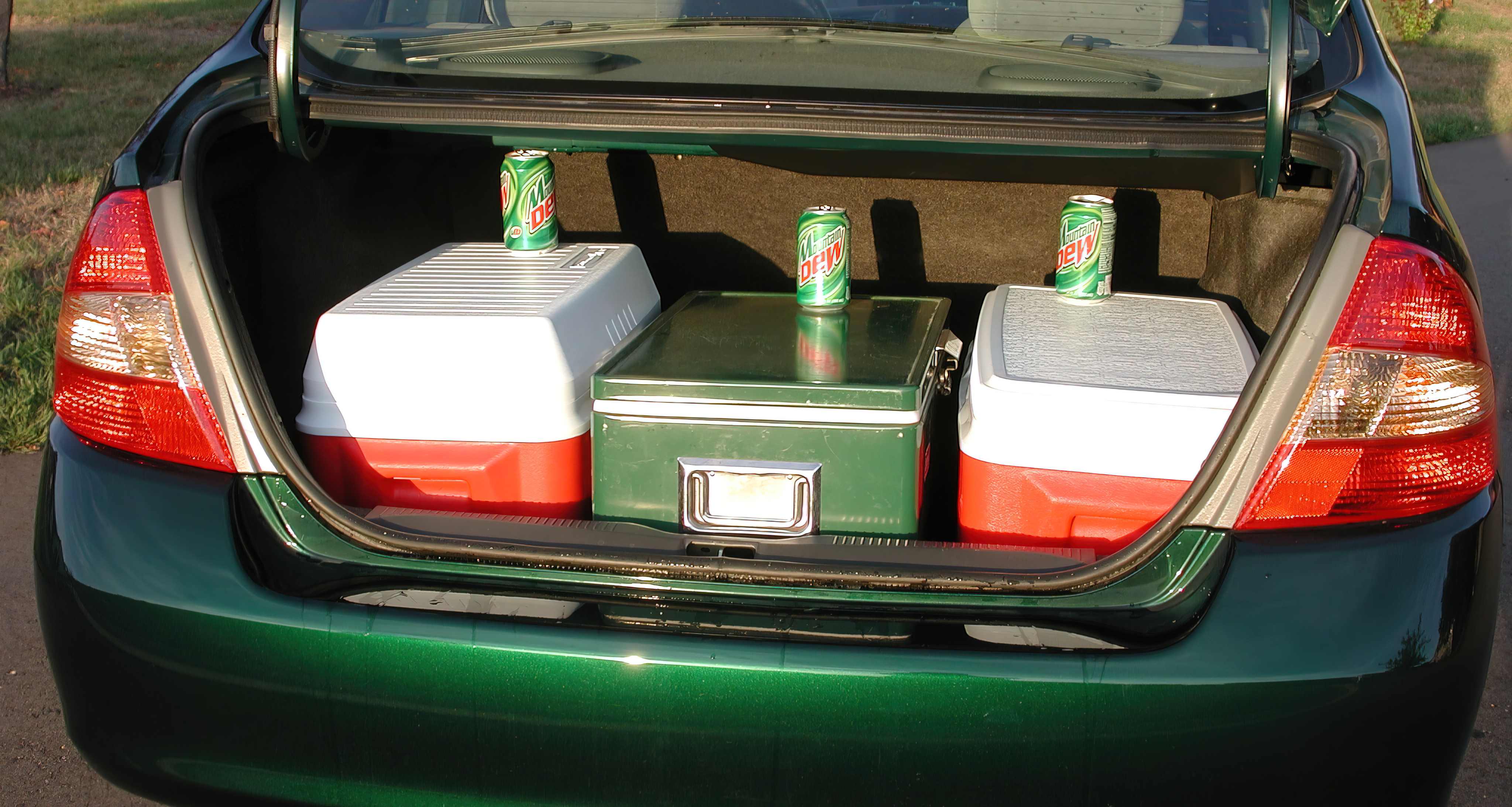 The trunk is a lot bigger than it looks. 3 large coolers fit inside, on