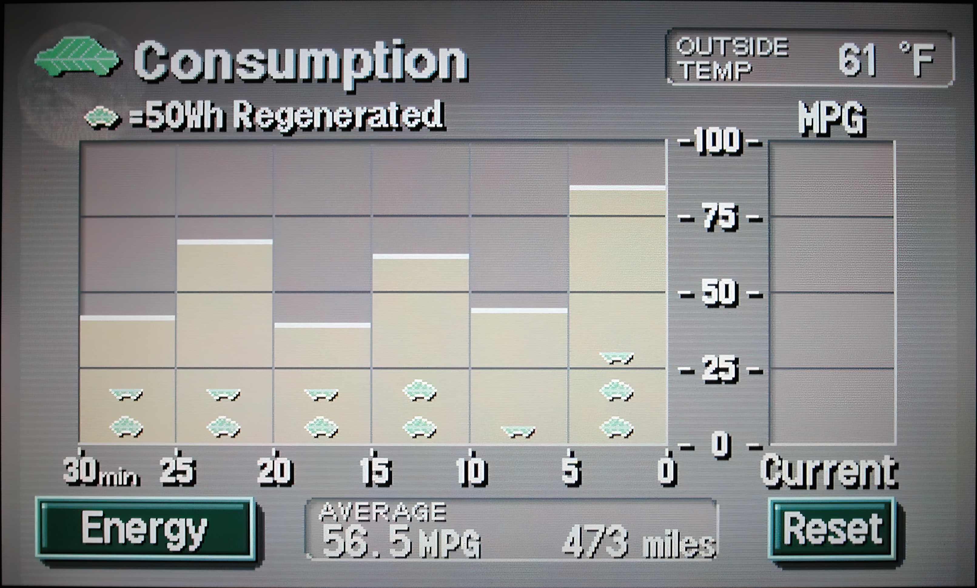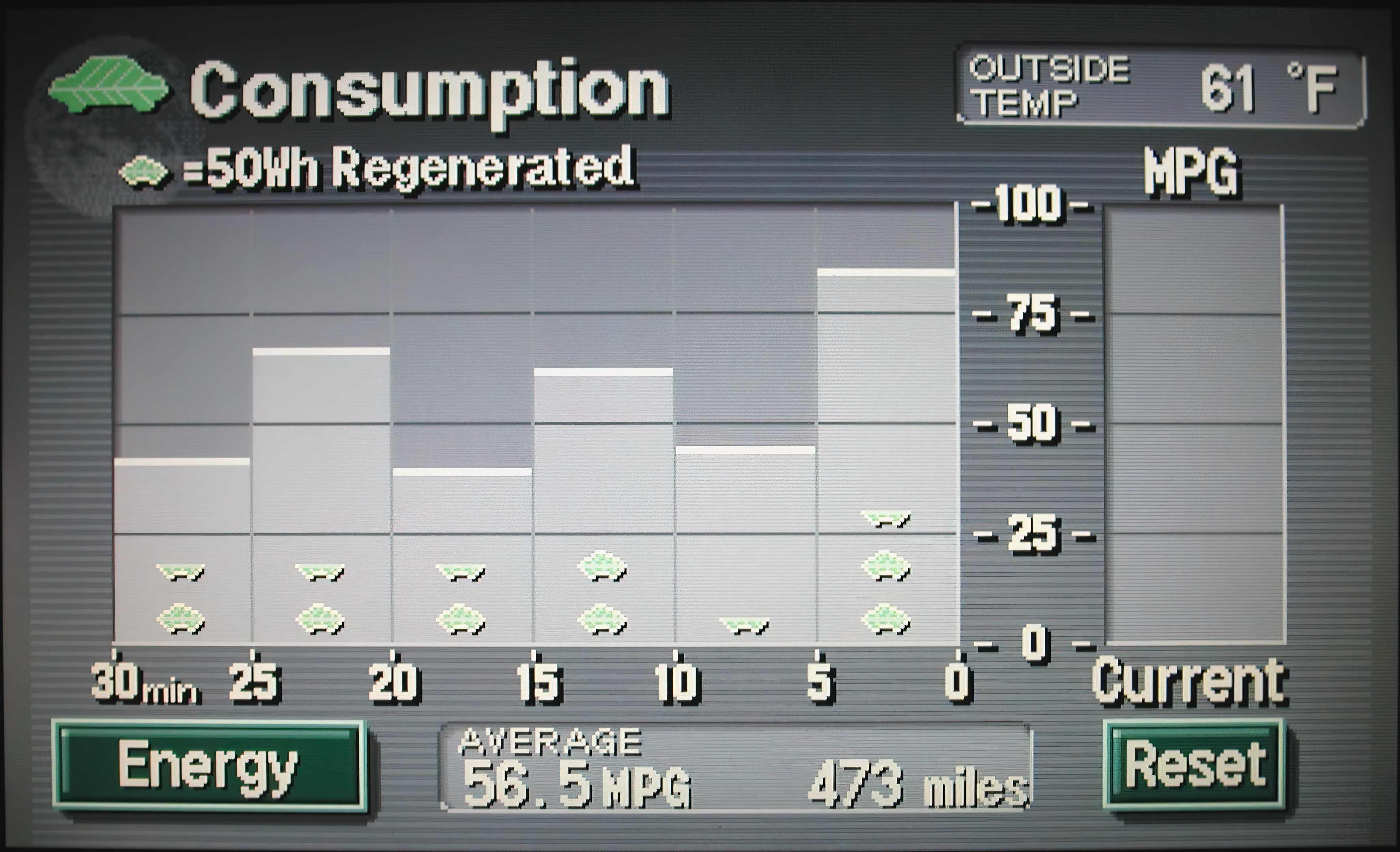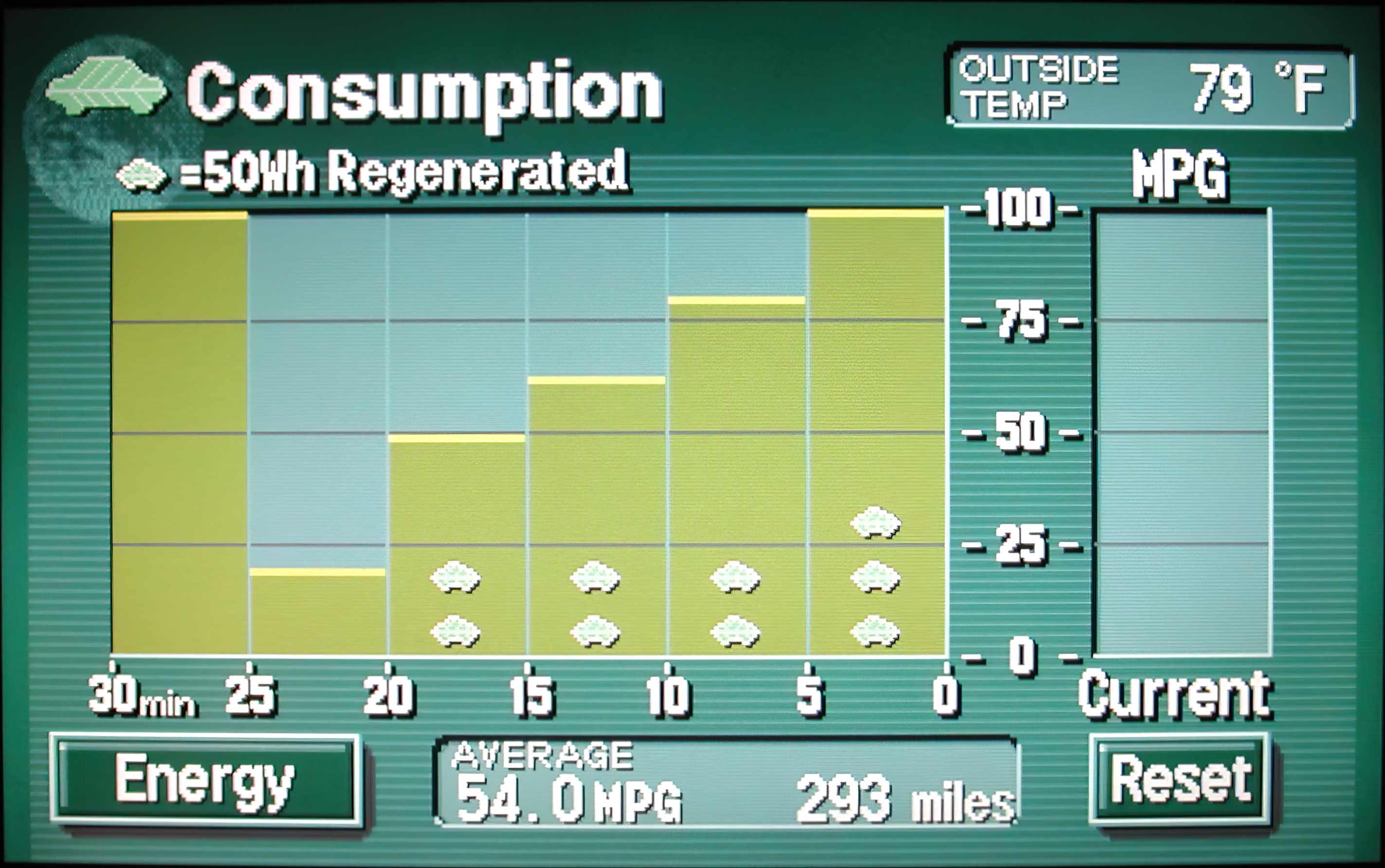 The best tank efficiency yet, at the pump calculated to 54.5 MPG (Weds. 6/09/2004):
