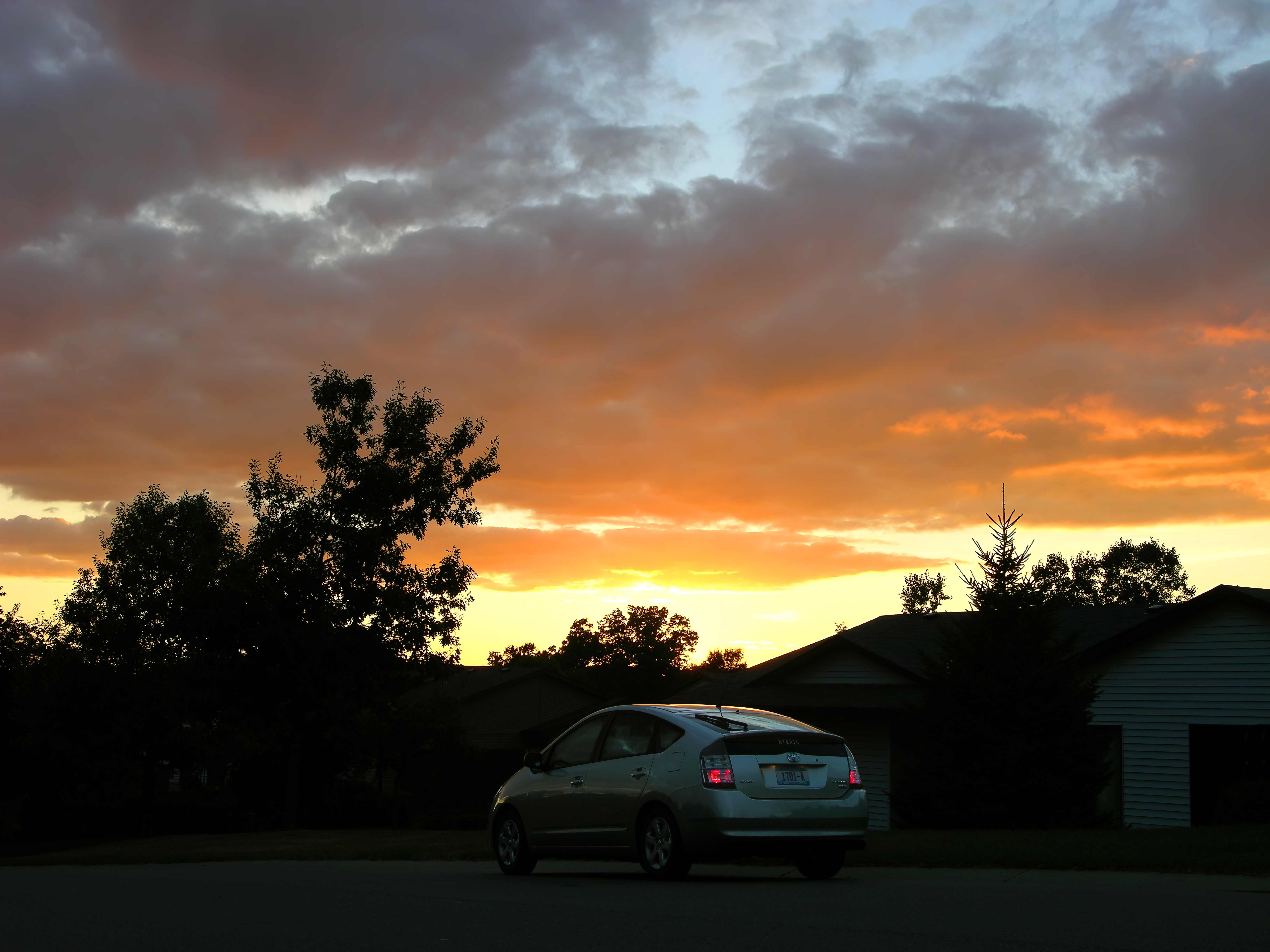 You can never have enough colorful sunset photos... with a Prius (Tues. 9/07/2004):