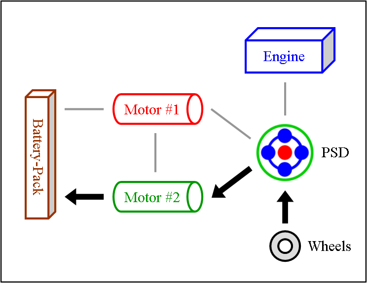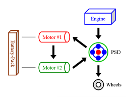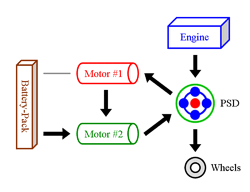 backward through the hybrid system. This causes the large motor to now operate